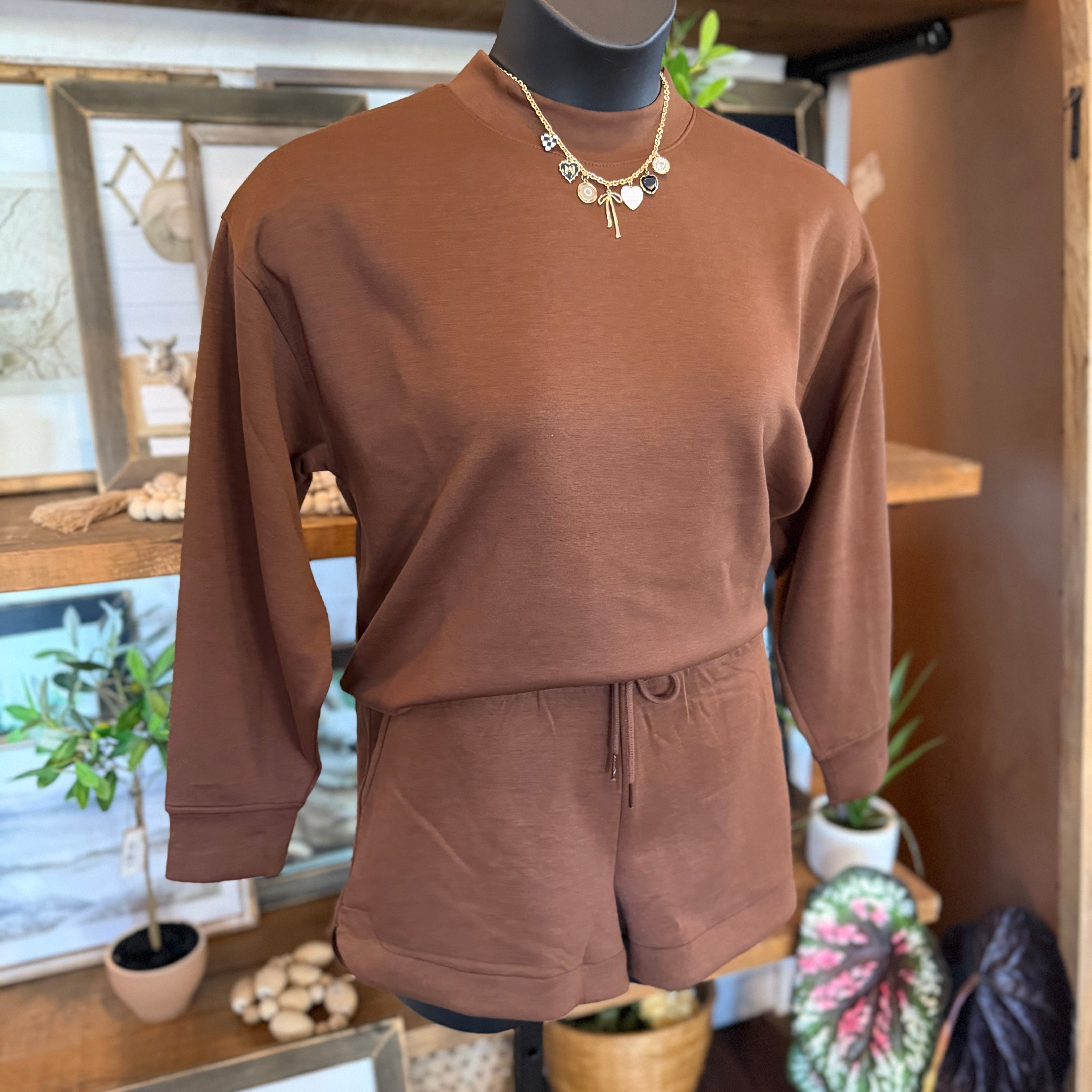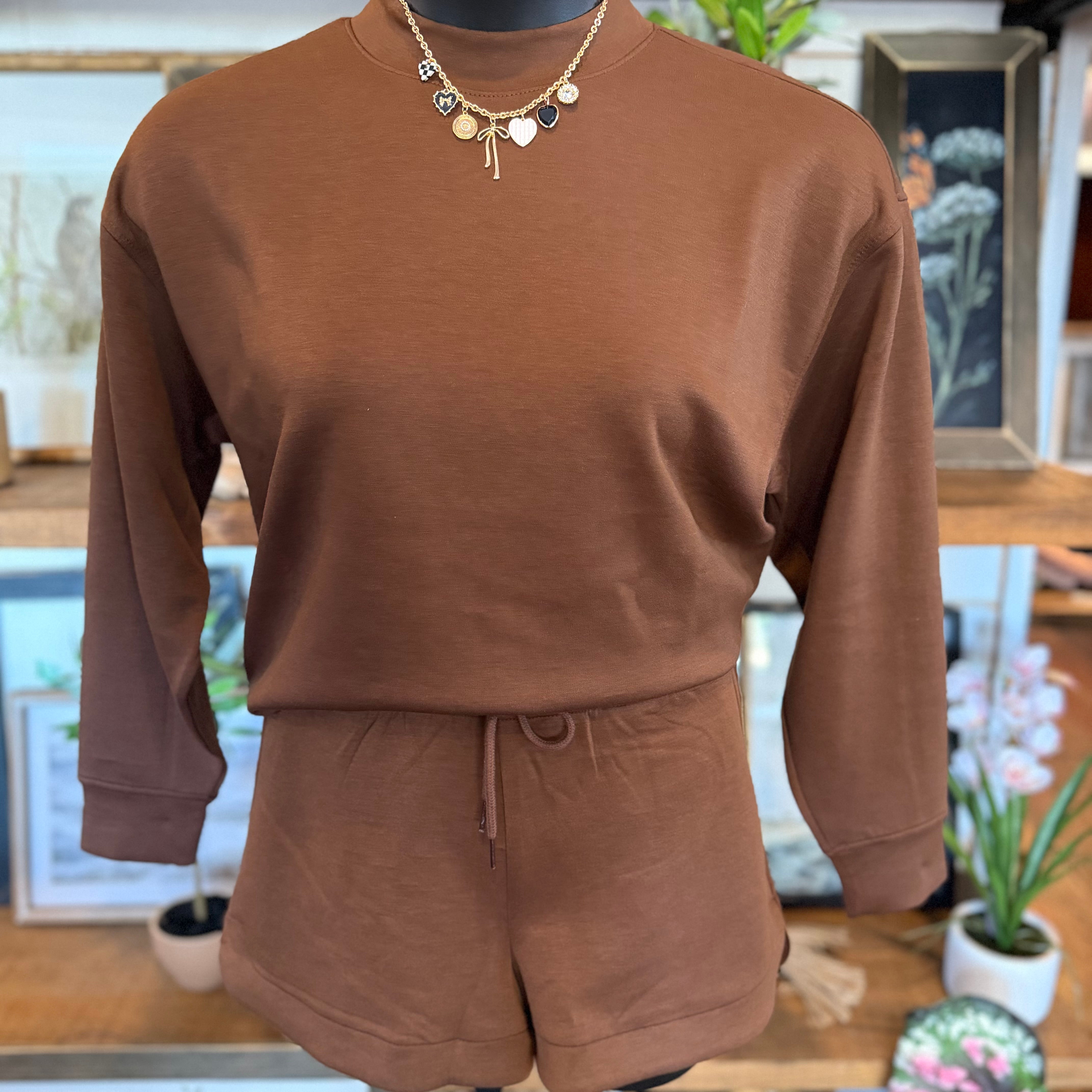 Scuba Pullover & Shorts Set | Brown