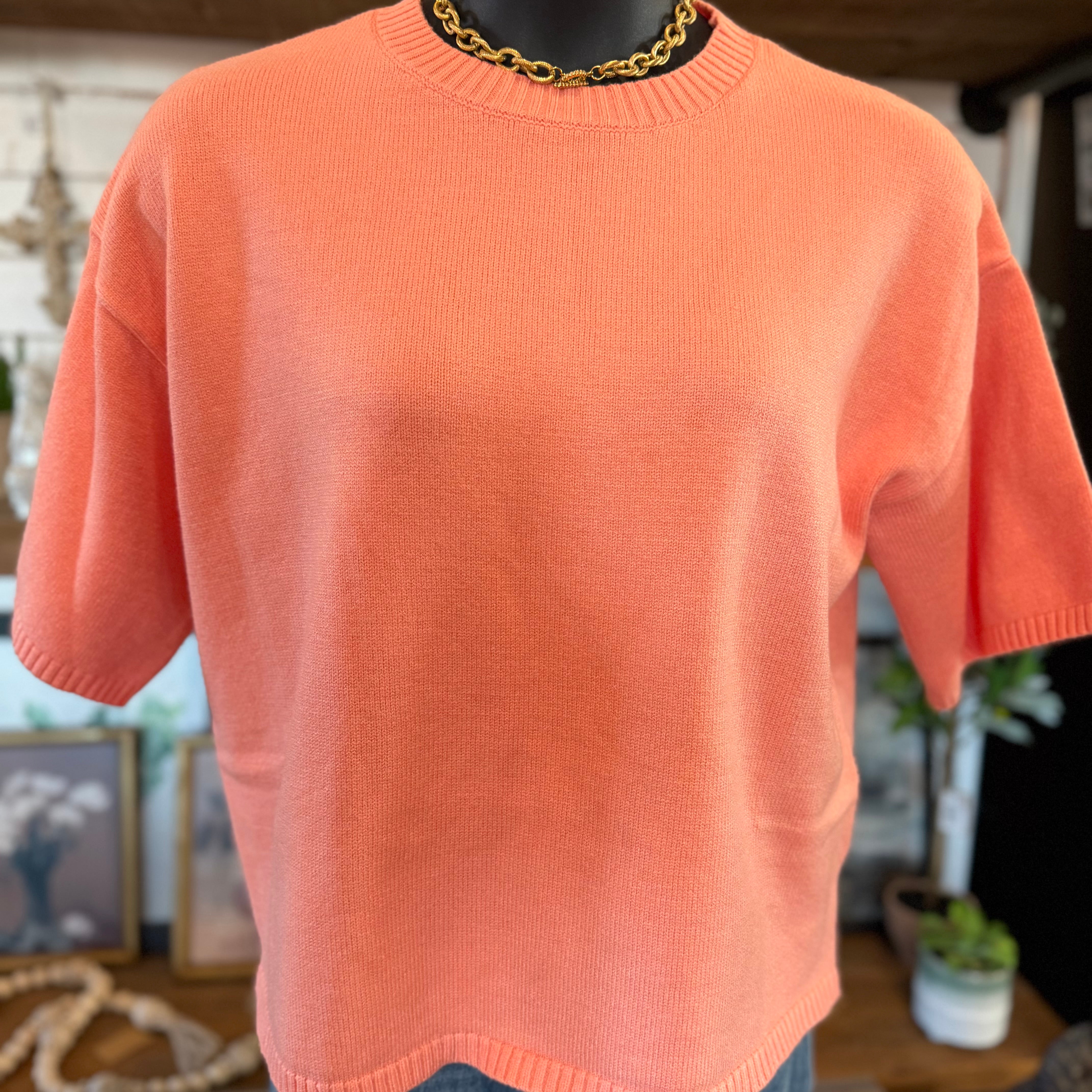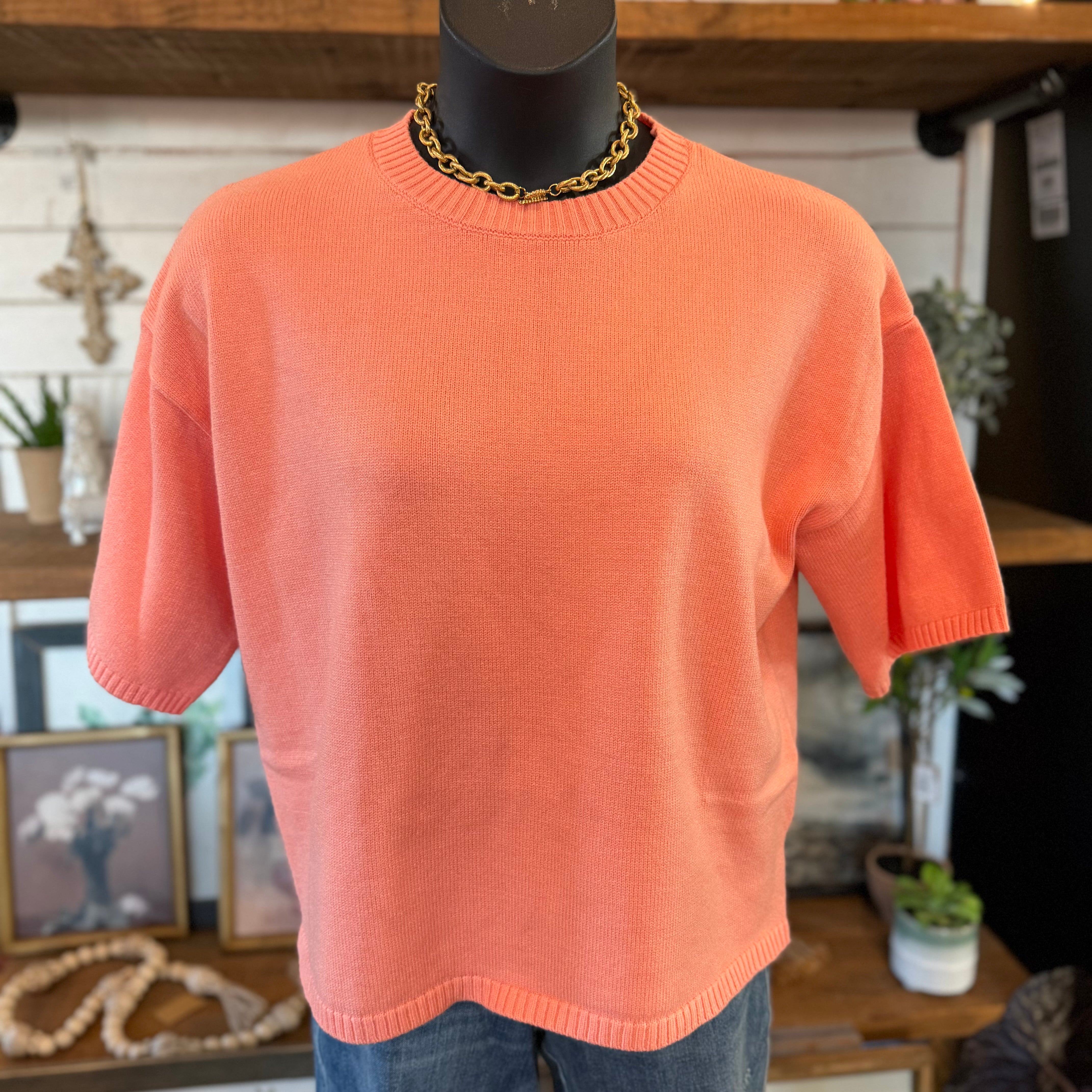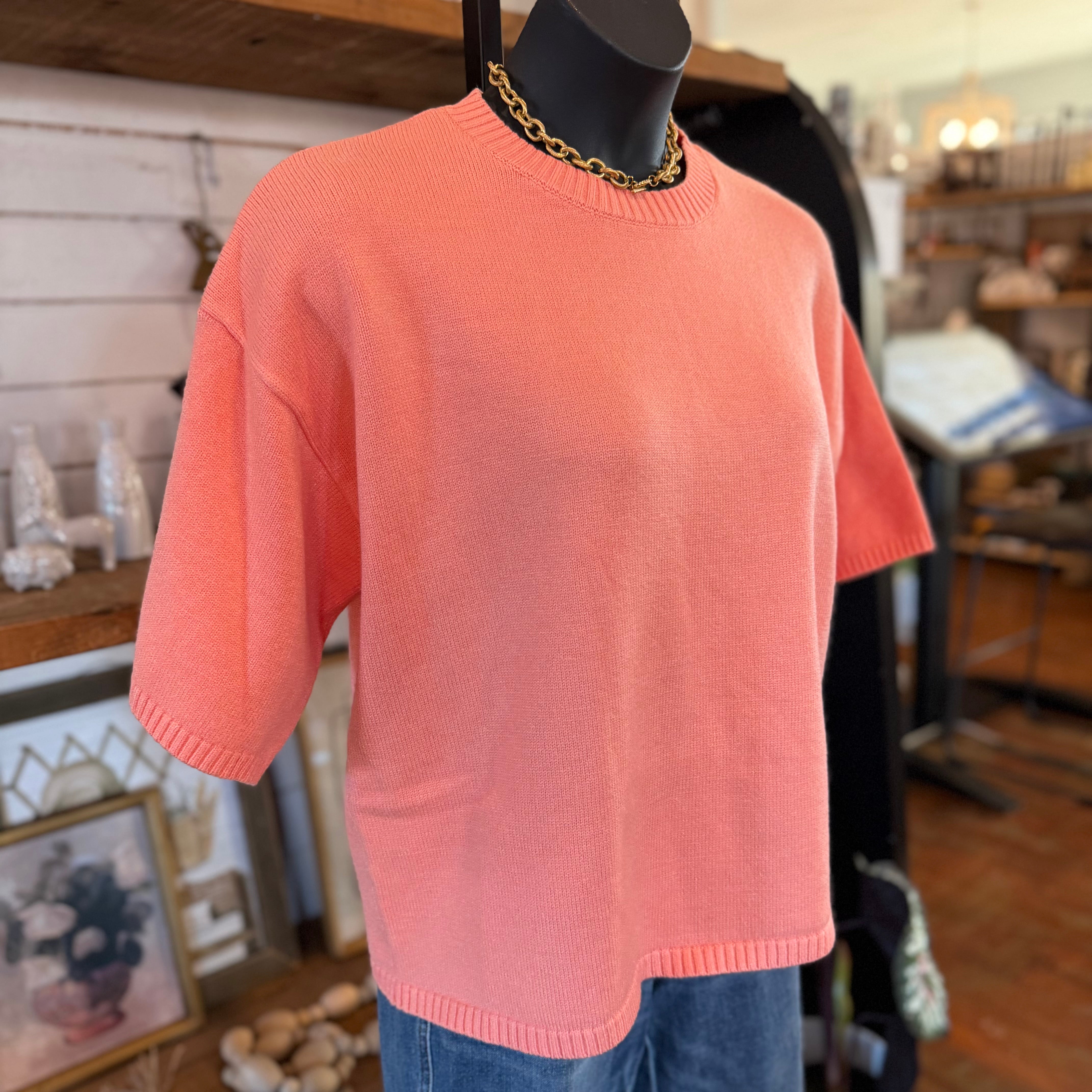 Short Sleeve Oversized Sweater Top | Peach