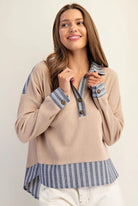• The stripped contrast trim gives this top a modern edge, making it a versatile and stylish choice for any occasion