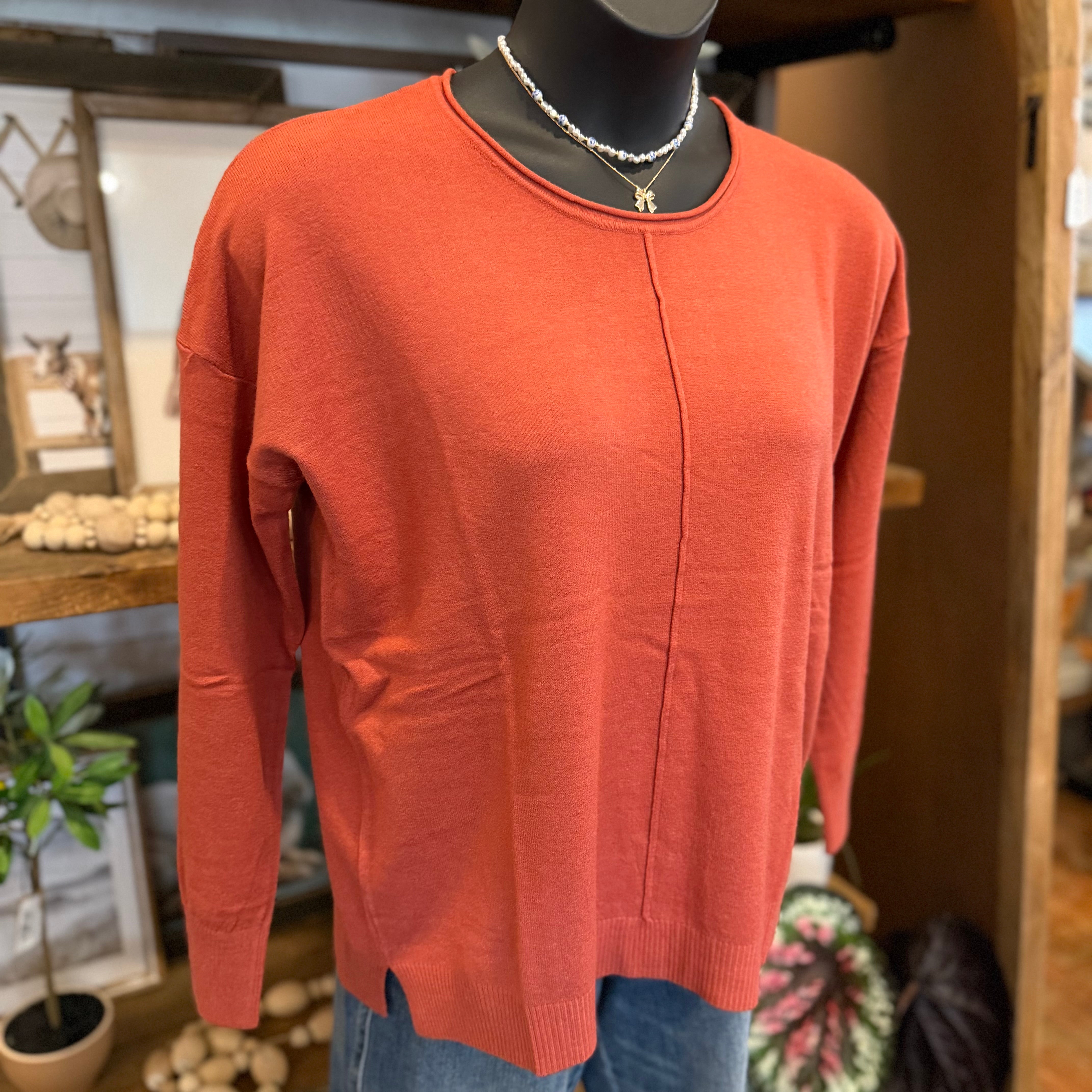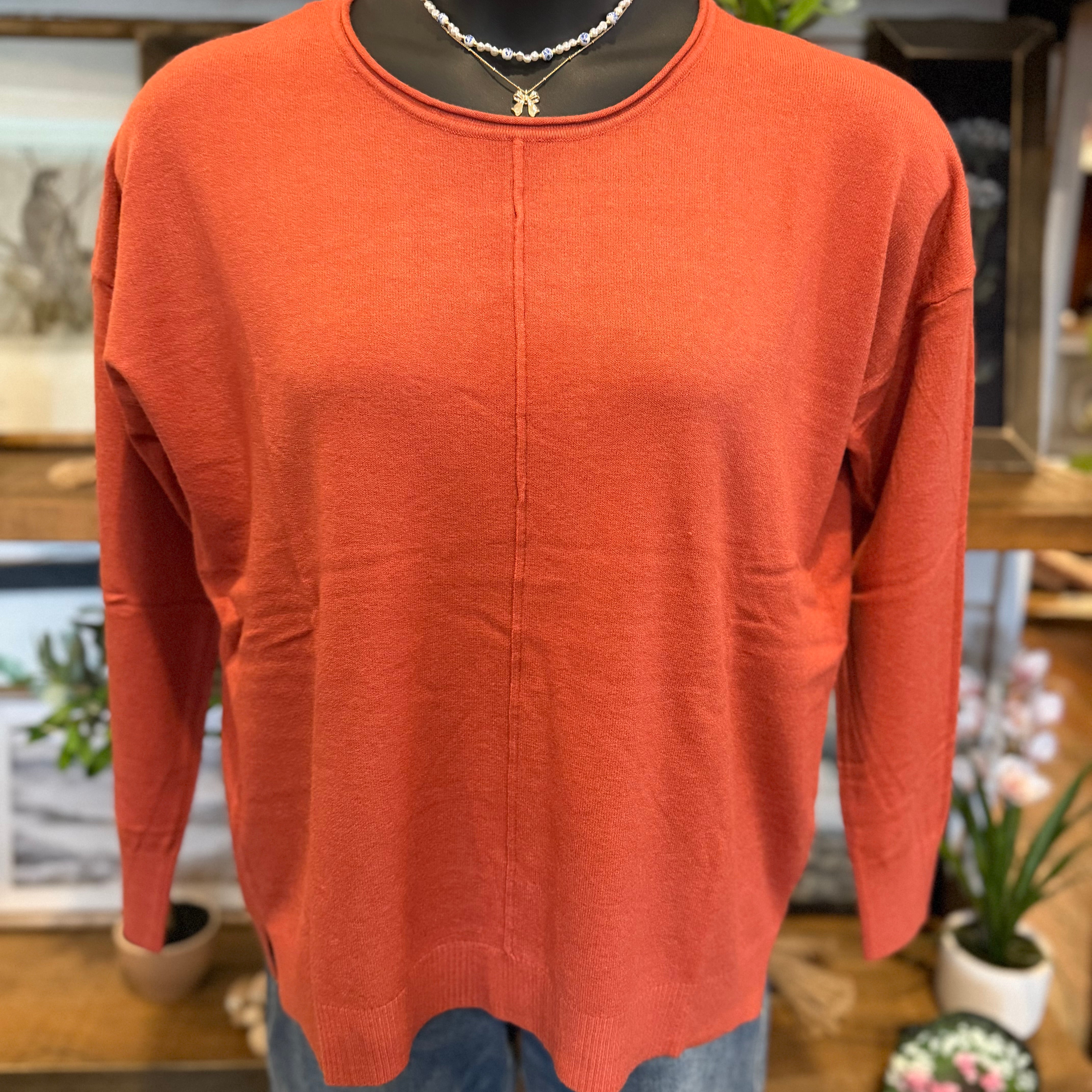 - Crafted from high-quality viscose, this round-neck sweater features a stylish front seam for added texture and visual interest