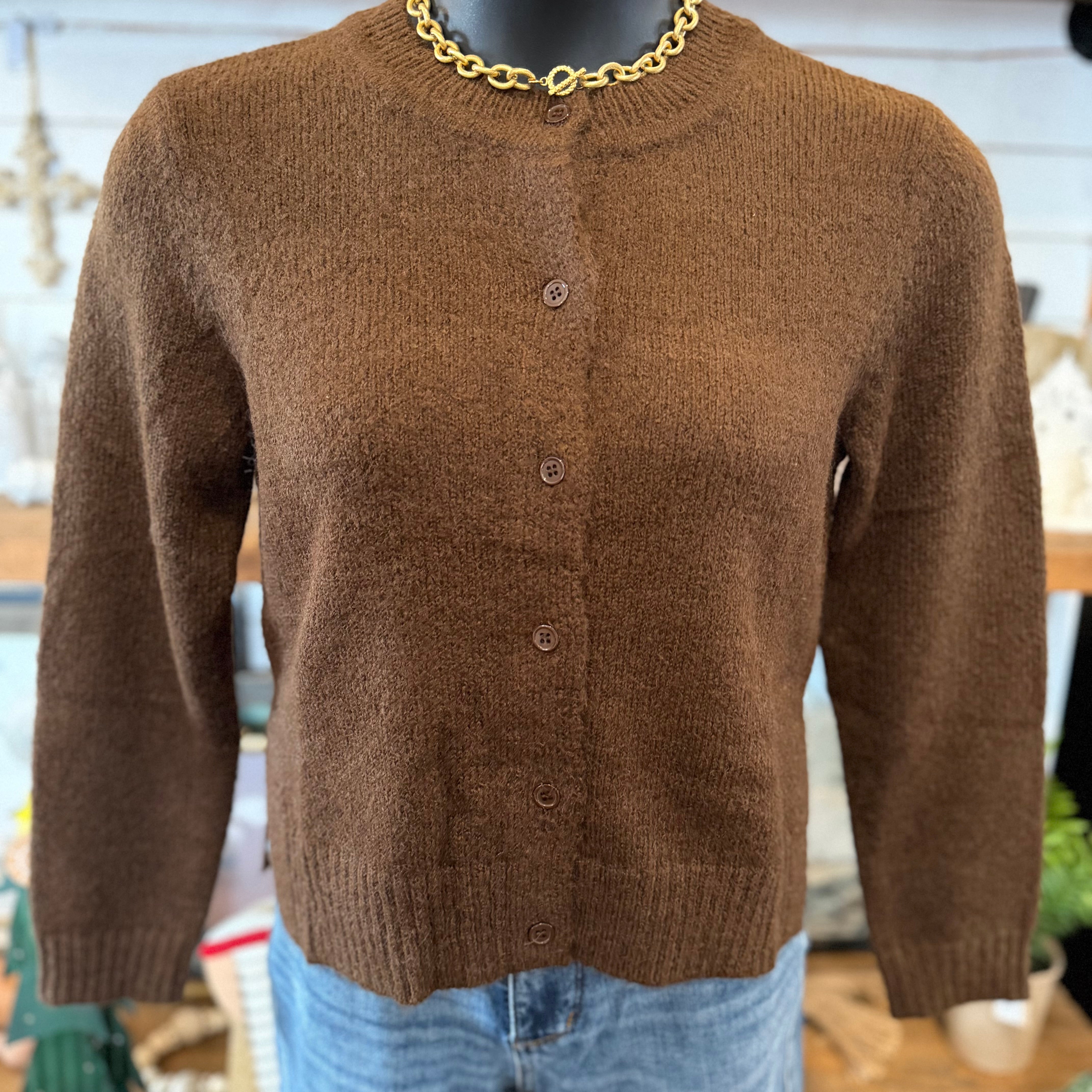 - This Wool Blend Melange Cropped Cardigan in espresso offers a luxurious blend of warmth and style