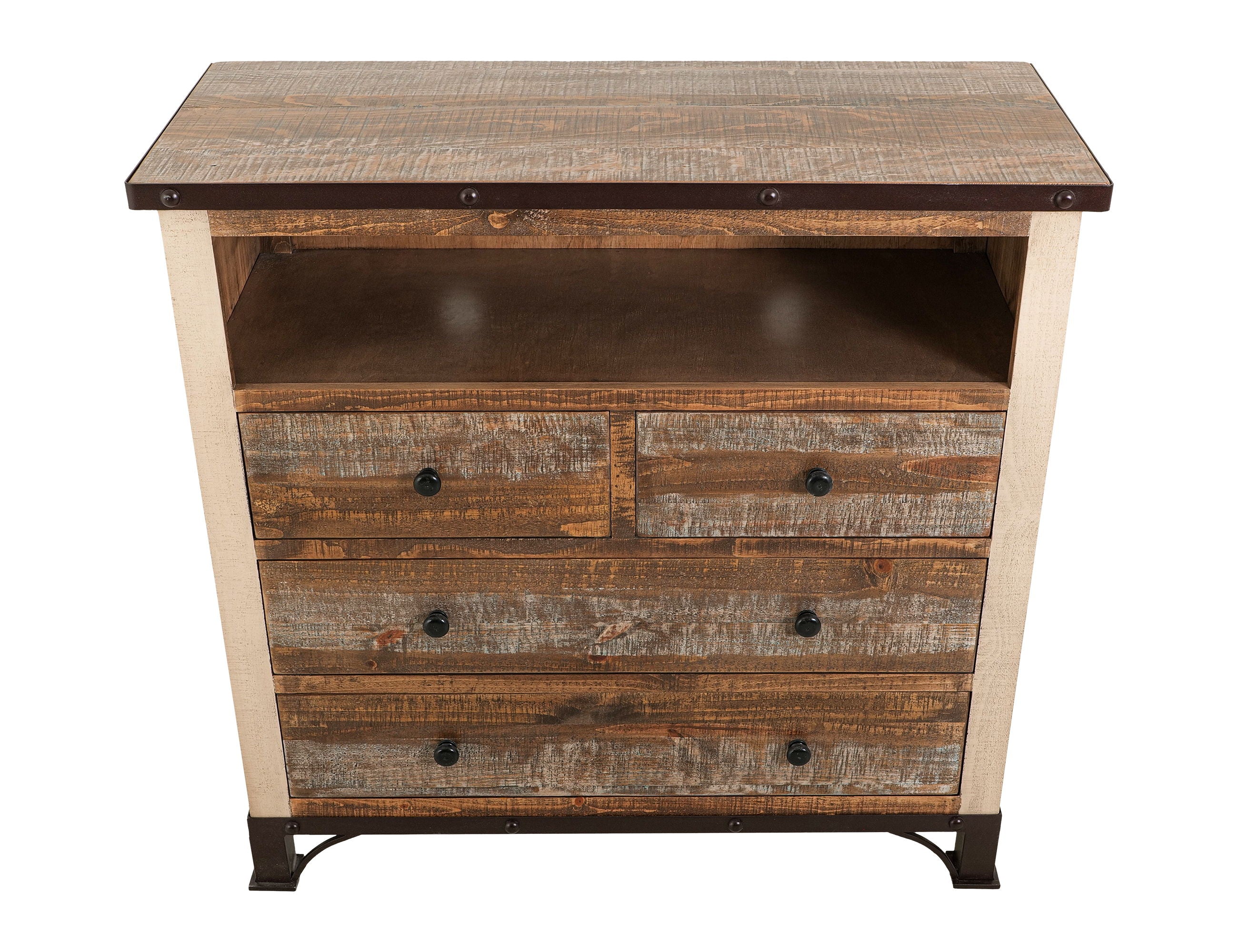 Chest. The Antique collection is meticulously crafted from solid pine wood, featuring a captivating hand-distressed look in a multicolor finish. This collection serves as the perfect rustic addition to your home.