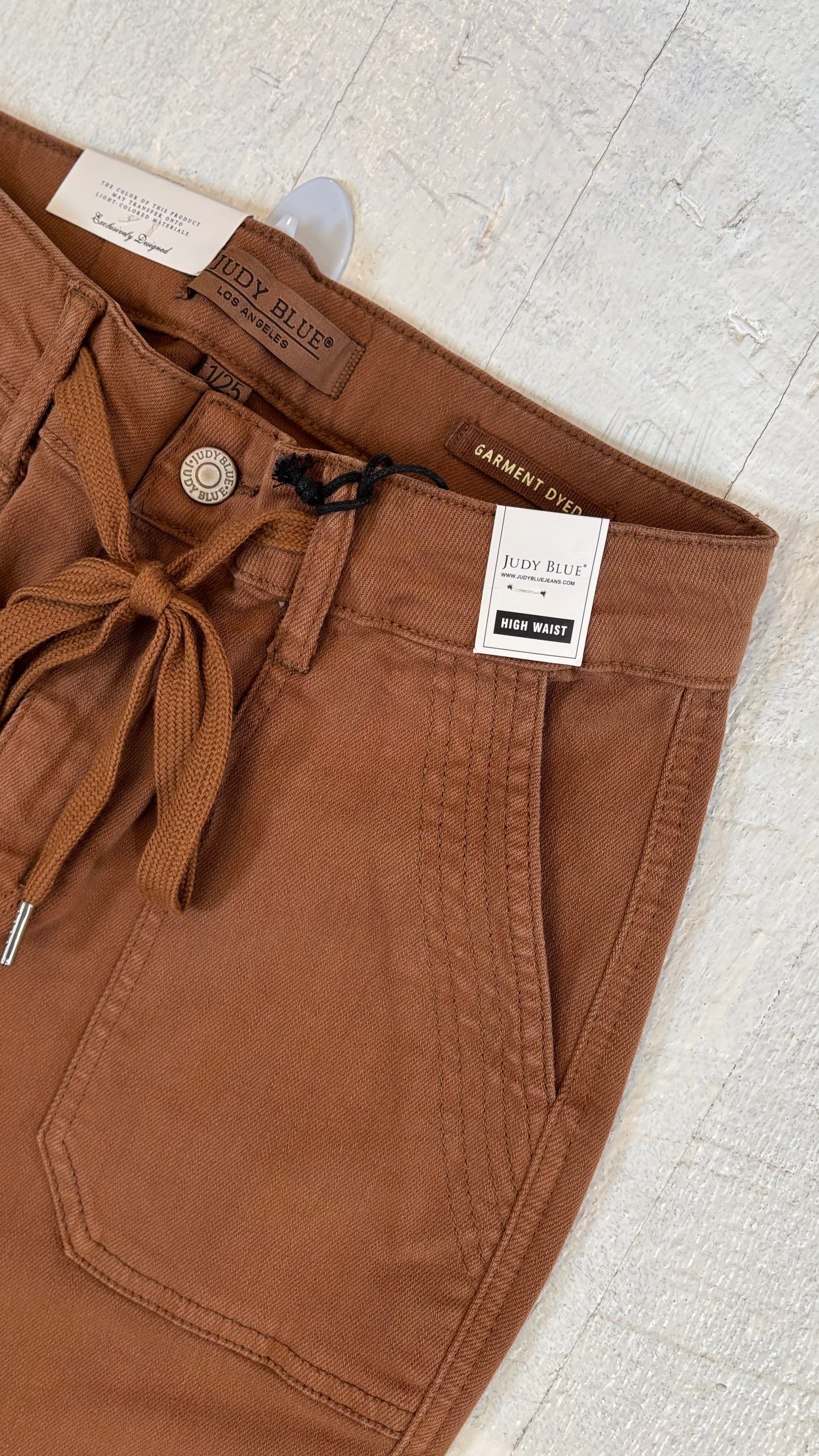 High Waist Garment Dyed Cuffed Joggers | Camel