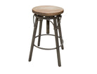 Wooden Round Seat Adjustable 24-30" Swivel Iron Base Stool. Indulge in the cozy charm of the Montana adjustable swivel barstool with its round wooden seat and hand-wrought iron base in a stunning matte black finish. Its backless design allows it to easily tuck under tables and countertops, saving space.